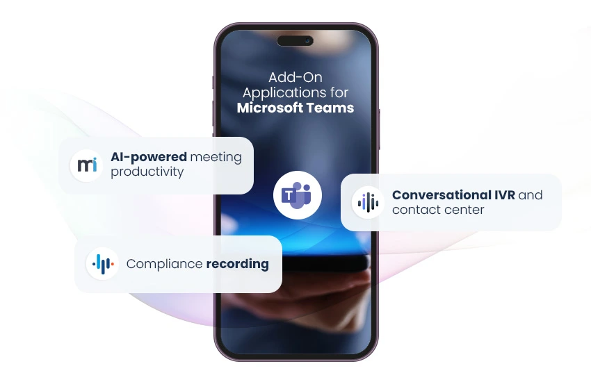 Ergänzen Sie Ihre Microsoft Teams UCaaS-Umgebung mit produktivitätssteigernden Anwendungen wie Contact Center, Konversations-IVR, Interaktionsaufzeichnung und einem generativen KI-gestützten Meeting-Assistenten.