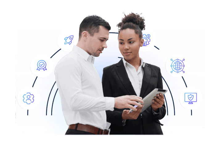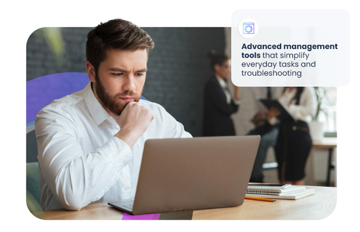 AudioCodes Live Platform provides advanced management tools that simplify everyday tasks and troubleshooting, from detection to correction, ensuring smooth operations and streamlined processing. From an intuitive self-service portal, you can onboard, manage and monitor user calling policies, meeting room devices and business phones, ensuring 24/7 availability.
