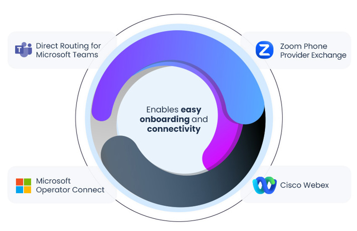 AudioCodes Live Platform enables service providers and partners to rapidly onboard their business customers and easily deliver voice connectivity and other applications using advanced automation and management tools. It works with both Microsoft Operator Connect and Direct Routing, as well as Zoom Phone Provider Exchange and Cisco WebEx.