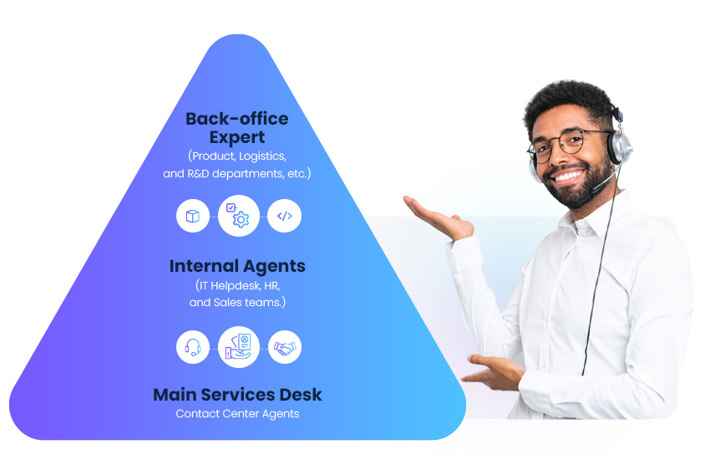 Proporcione la experiencia de servicio completa que necesitan quienes llaman a su centro de asistencia principal, así como los departamentos internos: TI, RR. HH., etc.
