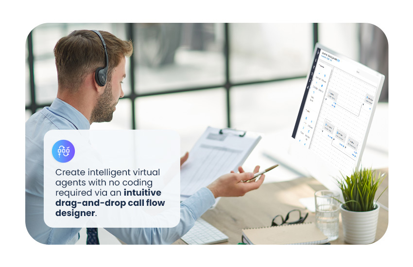 Grâce aux fonctionnalités SVI Conversationnel de Voca CIC, les entreprises peuvent créer des agents virtuels intelligents (IVA) simplement et rapidement, sans aucun codage, via un concepteur de flux d'appels intuitif par glisser-déposer. À l'aide de simples demandes vocales, les flux d'appels de la ligne principale peuvent être instantanément automatisés, créant ainsi une expérience client extrêmement efficace.