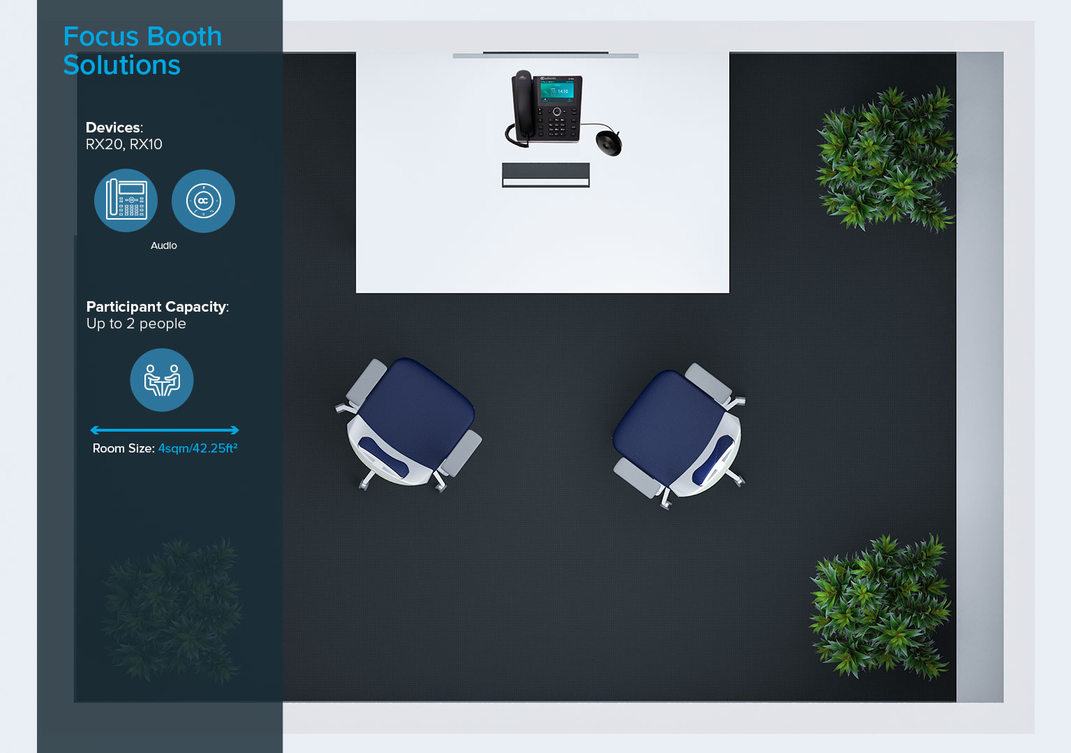 AudioCodesのRoom Experience (RX) Suiteの製品およびソリューションは、素晴らしい音声品質と鮮明な画像、使いやすさ、IT管理ツールとのシームレスな連携が特徴で、ワンランク上の会議室体験をお届けします。RX Suiteは、主要なユニファイドコミュニケーションソリューション・ベンダーが販売する革新的なソフトウェアや製品と組み合わせることで、音声のみの電話会議やビデオを使ったコラボレーションセッションで絶え間ない生産性を確実に実現します。会議の参加者は、オフィスの会議室やリモート環境での席の配置にかかわらず、仕事を進めるために重要なことをしっかりと耳と目で確認できます。