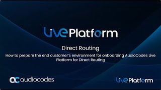 • How to prepare end customer’s environment for onboarding AudioCodes Live Platform for Direct Routing