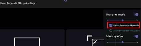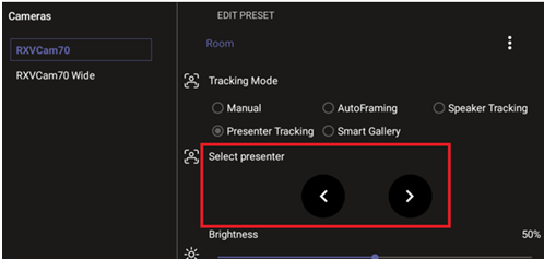 In Camera Settings, when the Composite AI is disabled, the user can select the presenter they want the camera to track: