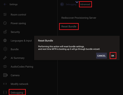 The MTRA bundle can be reset from the Admin UI of the RX-PAD. This reset removes the current bundle settings. Subsequently, upon reboot, the (already existing) bundle wizard will be displayed, where the new bundle type can be selected.