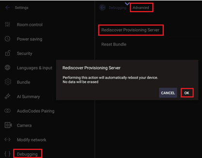 The Reset Provisioning command has been renamed to Rediscover Provisioning Server, to better reflect its function. This command resets the device’s provisioning settings, allowing it to connect another provisioning server (if one is configured).