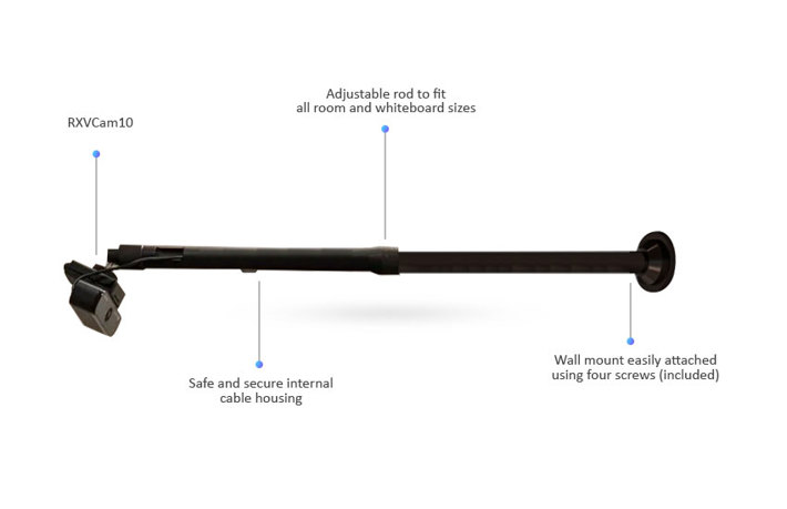 The RXVCam10-CC is designed for durability and is easy to install in any meeting room thanks to its adjustable whiteboard mount accessory.