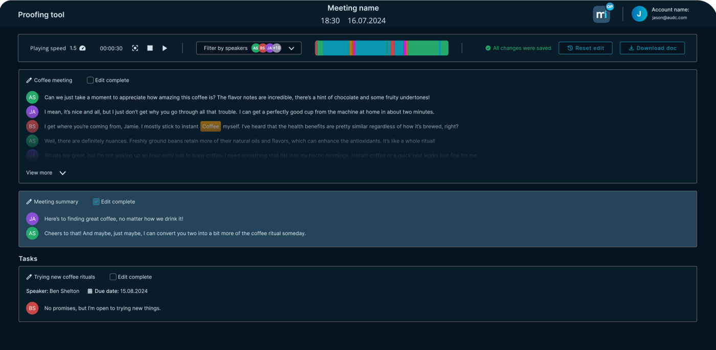 Precise and structured documentation of meetings requires valuable time and high skill levels. Therefore, important meetings are rarely documented professionally, and usually only when regulation absolutely requires it.